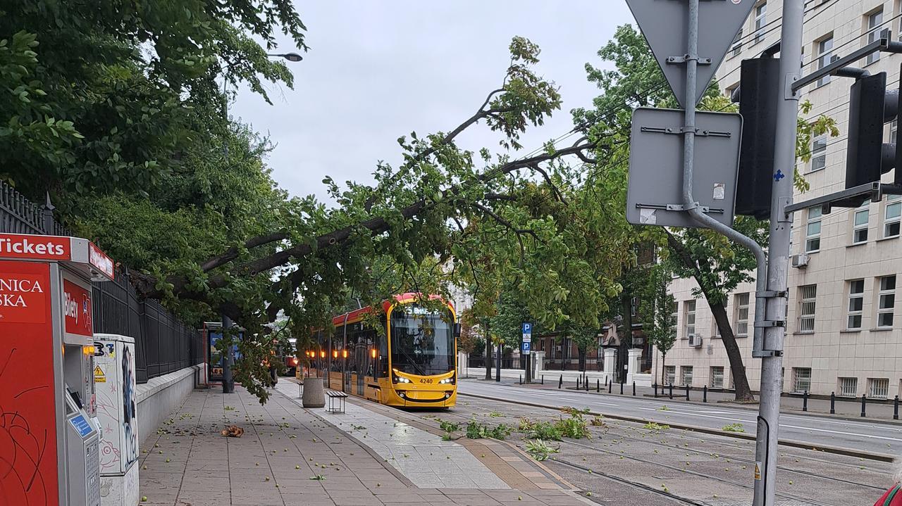 „Aufgrund eines umgestürzten Baumes in der Nähe des Haltestellenkomplexes Nowowiejska kommt es zu Problemen beim Betrieb der Linien 10, 11, 15, 17, 33, 35, 36 und T. Mögliche Verzögerungen. Linien können umgeleitet werden.