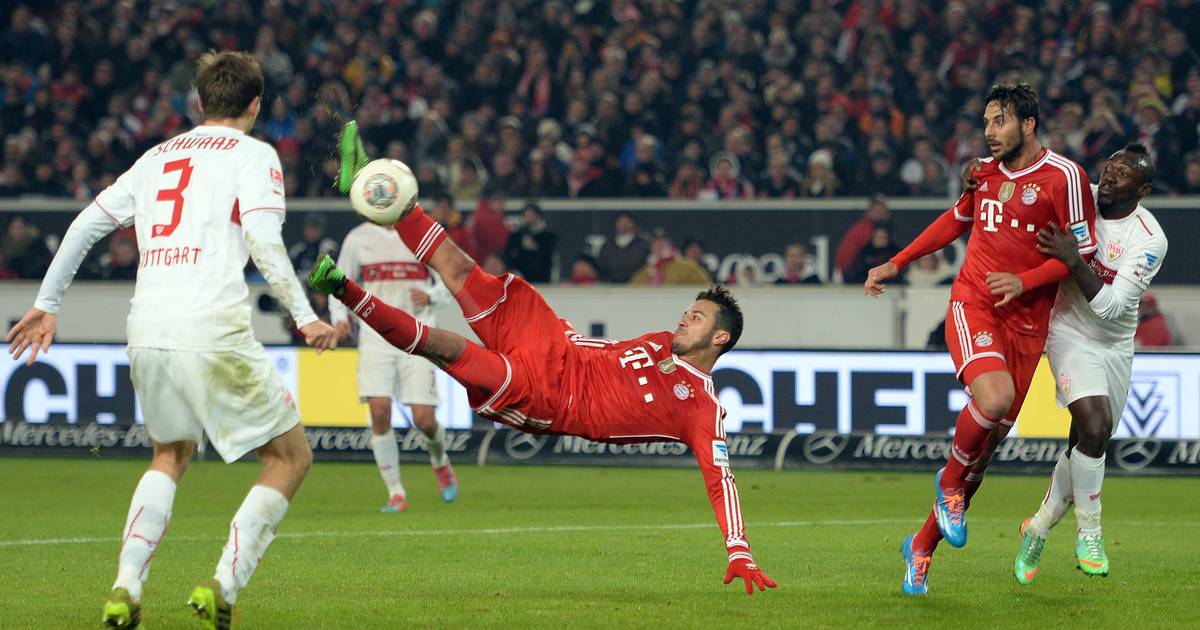 Dann kam die 93. Minute. Es war der letzte Angriff des Spiels, Rafinha überquerte die rechte Hälfte. In der Mitte brach Thiago vom Boden ab, lag horizontal in der Luft und erzielte das gefeierte Siegtor mit einem Seitenschuss an VfB-Torhüter Sven Ulreich vorbei, seinem ersten Bundesligator für die Bayern.